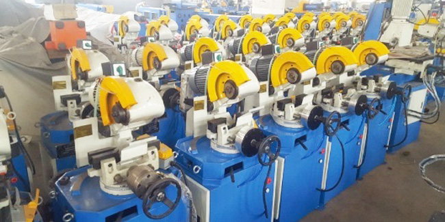 液壓雙頭倒角機特殊的刀盤設計,使用規格化刀片,調整刀簡單又方便,管內角,外角,平面一次加工完成,平均3-6秒左右一支(根據管徑的大小和厚度),快速高效率
